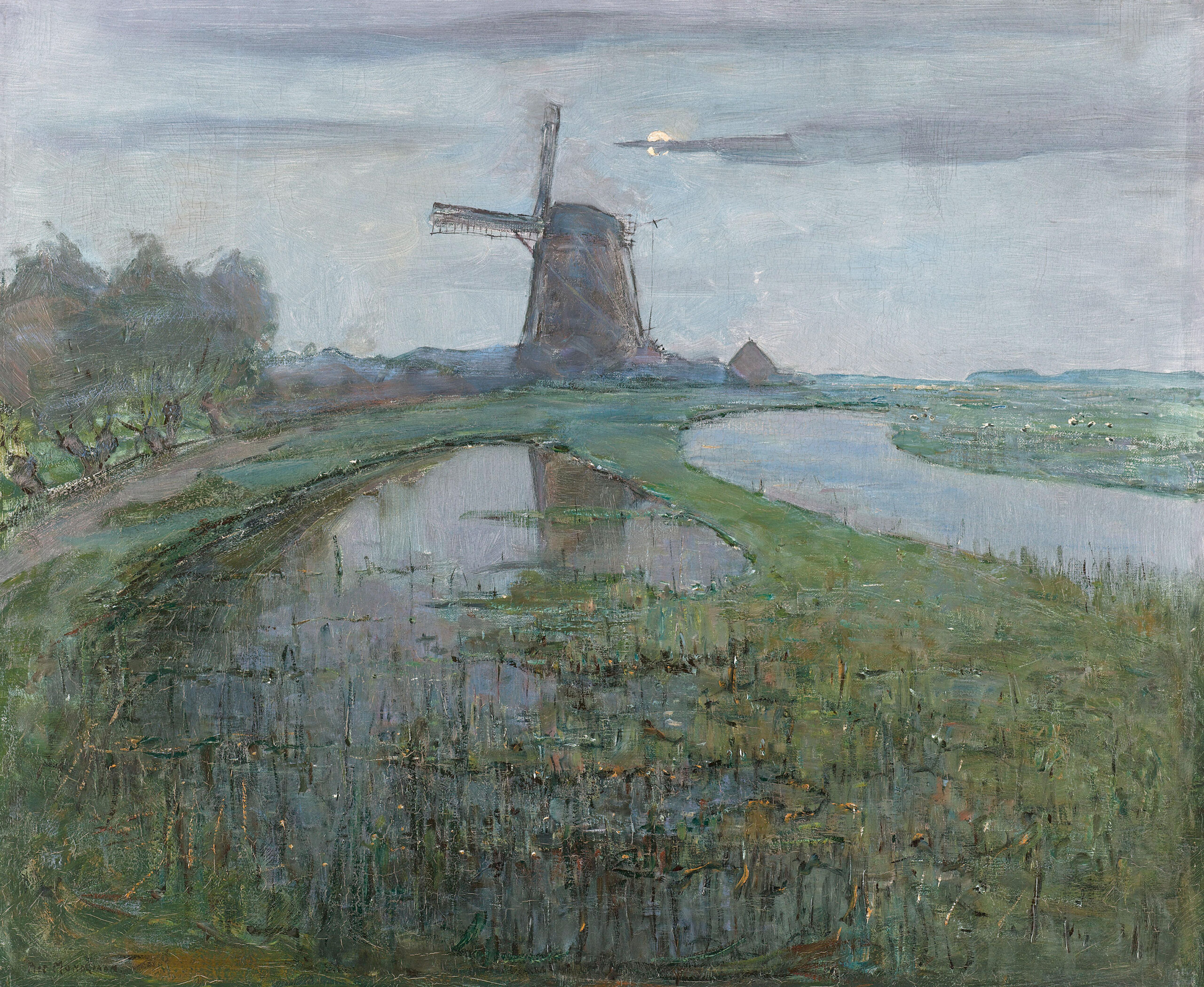 - Oostzijdse Mill along the Gein by Moonlight, Piet Mondrian (signed by the artist), circa 1903