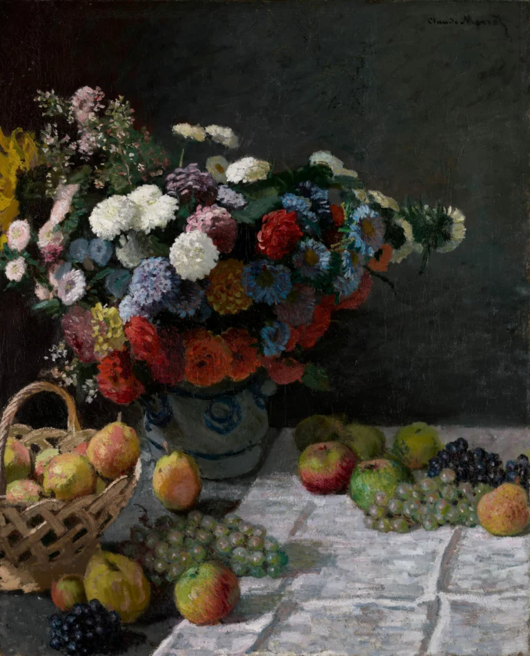 Bougival, summer 1869. Claude Monet temporarily leaves the banks of the Seine for his studio. He arranges multicolored flowers in a vase on a table, along with reddish apples, golden pears, green and black grapes. What appears to be a traditional exercise becomes an experimental ground that will revolutionize painting.