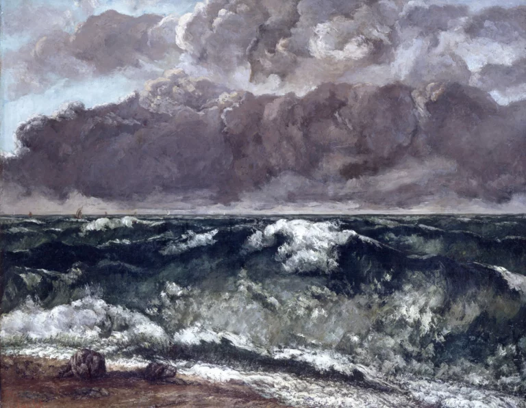 Chef de file du réalisme, Gustave Courbet (1819-1877) refuse toute idéalisation superficielle. Il peint le monde tel qu’il le voit. Avec « La Vague », il révolutionne la peinture de marine par sa technique matérielle audacieuse.