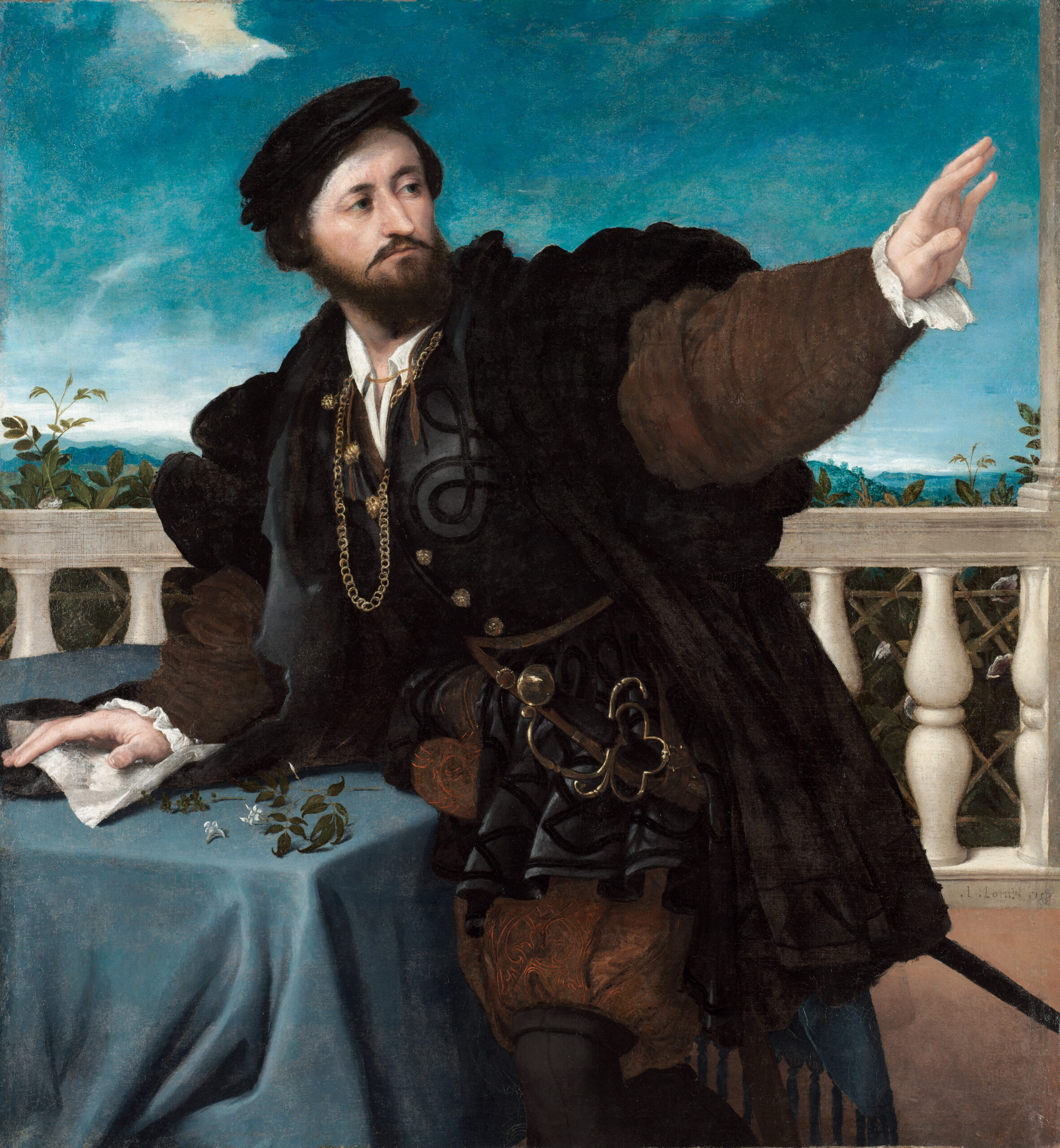 - Portrait d’homme, possiblement Girolamo Rosati, vers 1533–1534, par Lorenzo Lotto