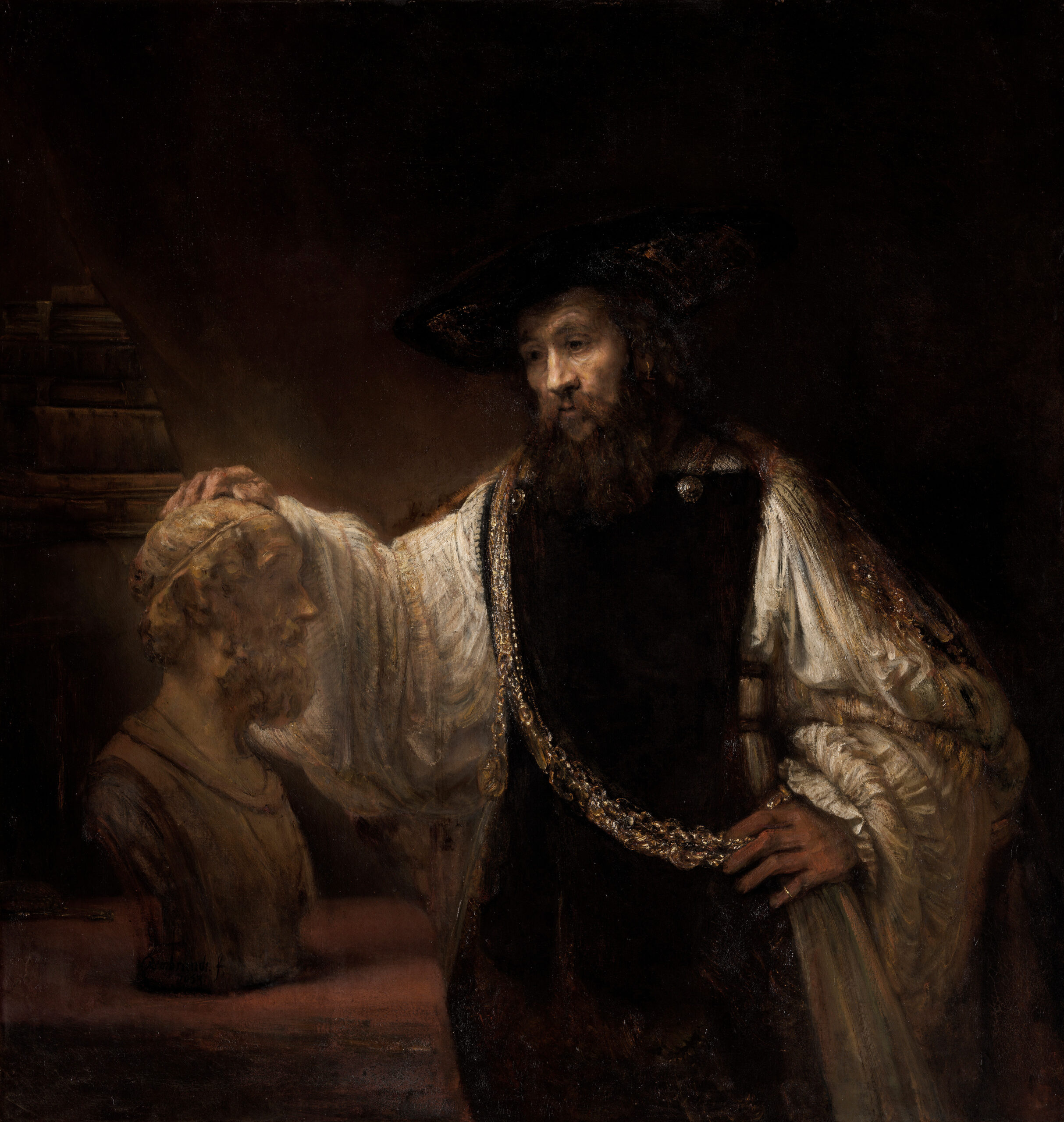- Aristote contemplant le buste d’Homère, par Rembrandt, 1653